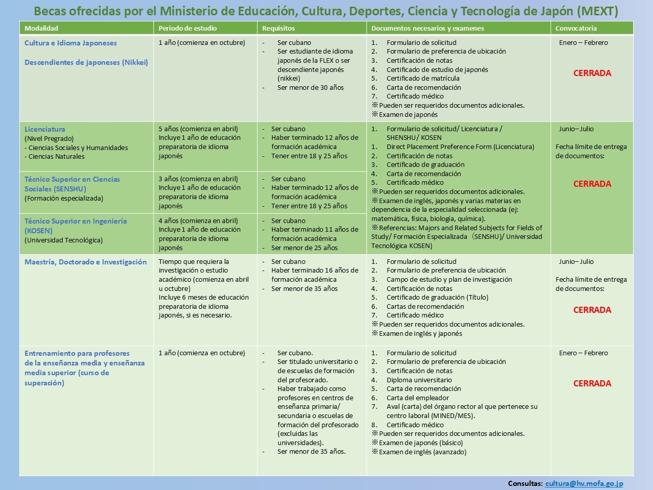 Convocatoria Becas MEXT: Información general